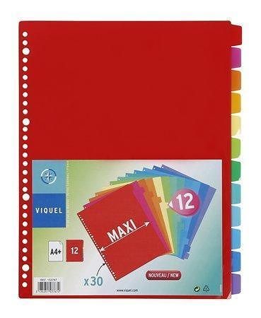 Rozlišovače, plastové, A4 Maxi, 12 částí, VIQUEL