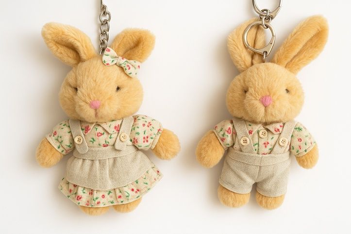 Vneste něhu a styl do každodenních chvilek s tímto roztomilým plyšovým přívěskem ve tvaru králíčka! Díky měkkému materiálu, detailnímu oblečení a praktickému kovovému očku je ideální jako přívěsek na klíče, batoh nebo kabelku.