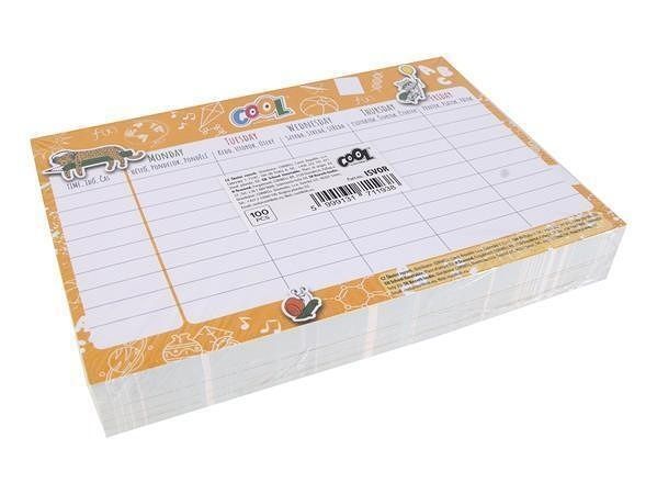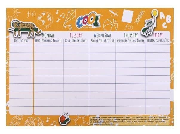 Rozvrh, žlutá / zelená, A5, oboustranný, 100 ks/ balení, COOL BY VICTORIA