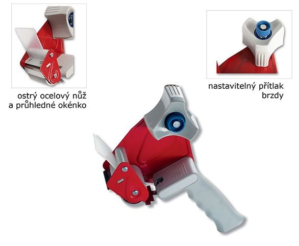Ruční odvíječ balicí pásky pro zalepování kartonových krabic. Jednoduché použití, kdy brzdička udržuje pásku neustále napnutou. Vhodný na pásky do šíře 48mm a návinu 66m. Dodáván bez lepicí pásky.