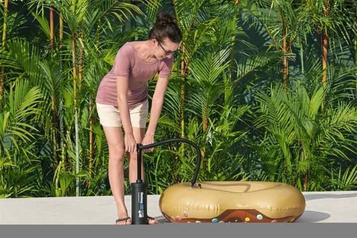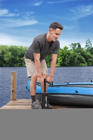 Balení obsahuje ruční pumpu, flexibilní hadici (0,8 m) a 3 ventilové adaptéry.