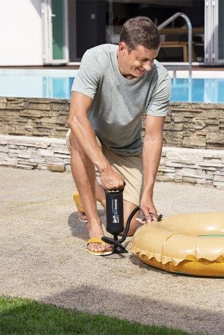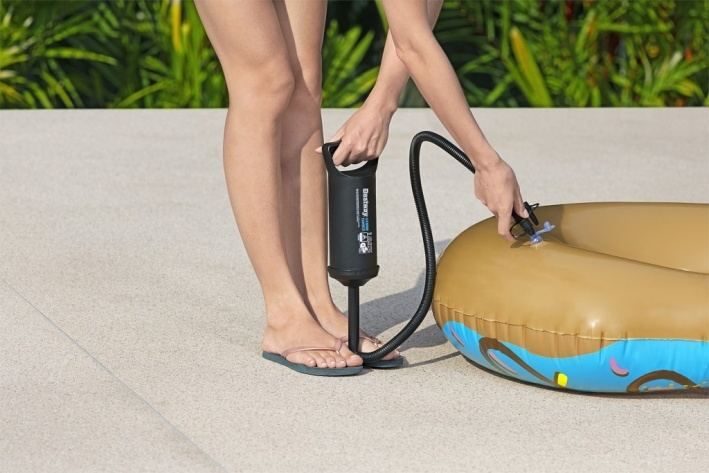 Balení obsahuje ruční pumpu, flexibilní hadici (0,8 m) a 3 ventilové adaptéry.