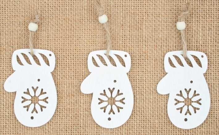 Rukavice dřevěná bílá 6 cm 3ks, na zavěšení