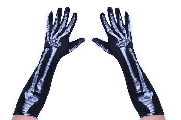 Úchvatné černé rukavice s motivy kostlivce jsou perfektním doplňkem na párty či karneval.