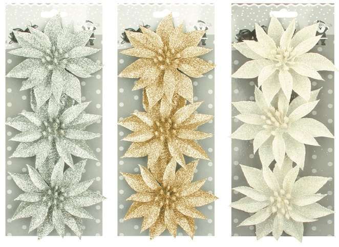 Růže vánoční glitrová 3 ks, 8 cm