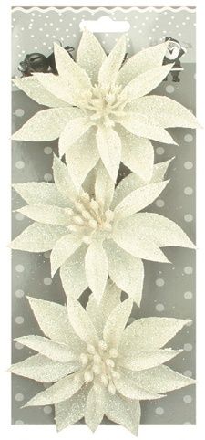 Růže vánoční glitrová bílá 3 ks