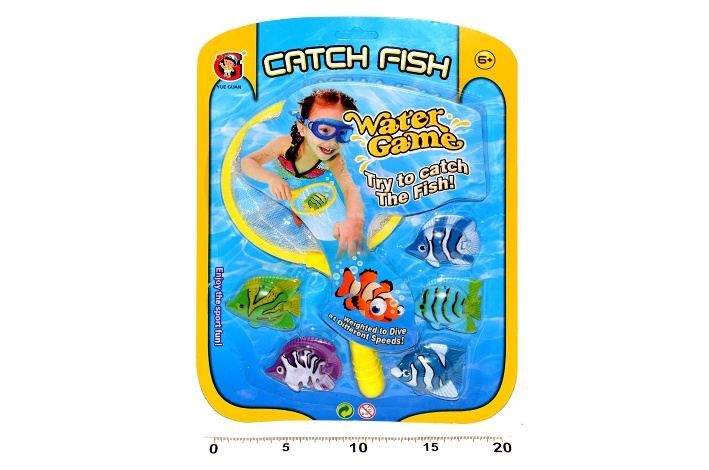 Chytání rybiček. Délka síťky 23 cm. Balení obsahuje síťku a 6 rybiček.