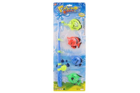 Plastový rybářský prut o délce cca 37 cm na konci s kotvičkou na chytání. Součástí 4 rybky o velikosti cca 8 - 11 cm na konci s očkem na chytání. Rozměr balení cca 52 x 18,5 cm. Věk 3+