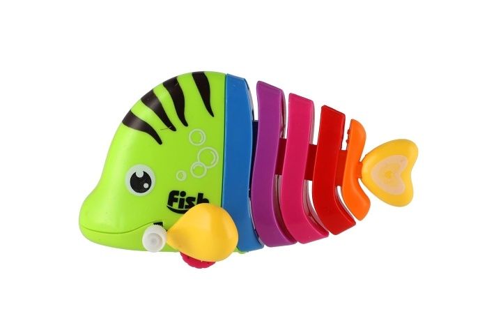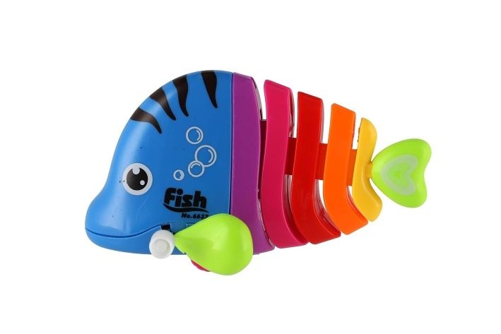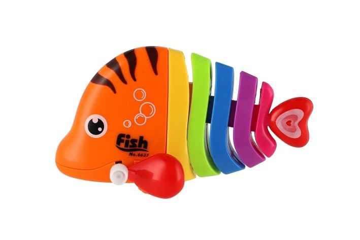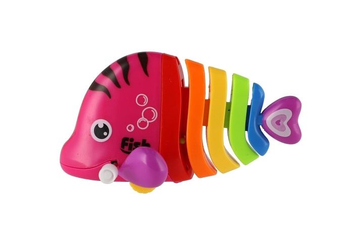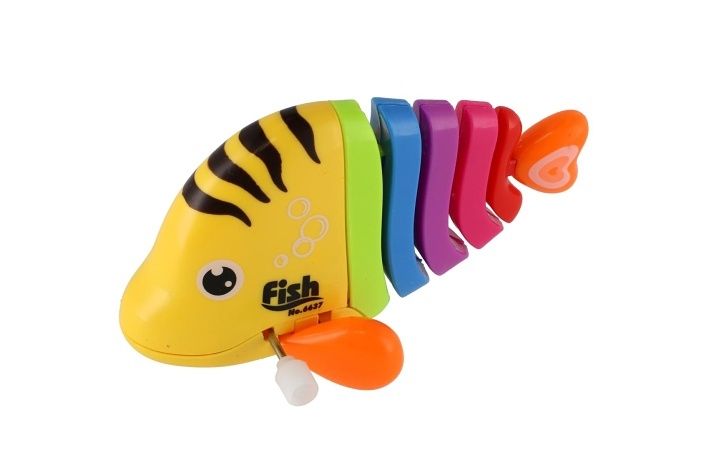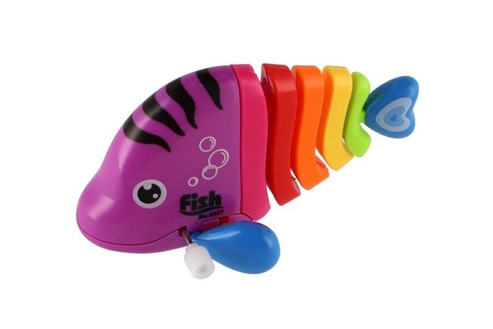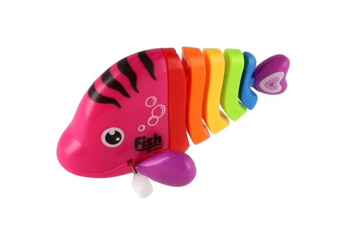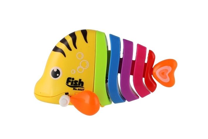 Pestrobarevná rybka na natažení vyrobená z plastu. Veliskot 11 cm.