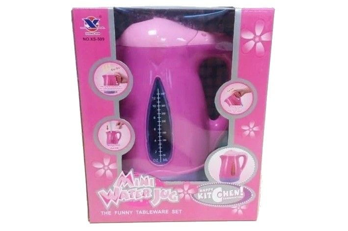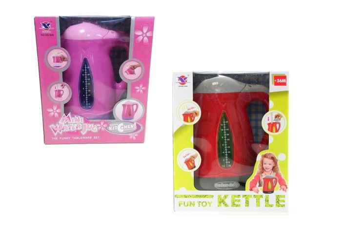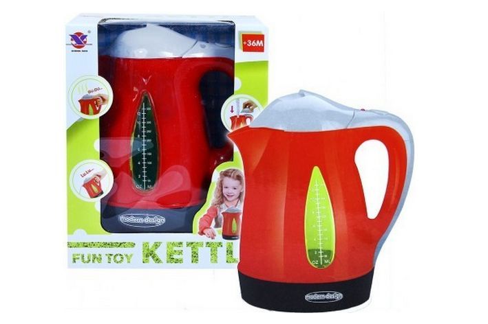 Konvice na baterie svítí a vydává zvuky. Lze naplnit vodou. Napájení na 3x AA baterie (nejsou součástí). Rozměry konvice cca 13 x 18 cm.
