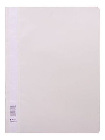 přední strana je průhledná a podél hřbetu má bílý zasouvací štítek na popisky