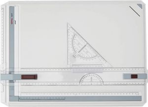 Plně vybavená deska na rýsování (rýsovací prkno) velikosti A4 pro rychlou, přesnou a snadnou práci.