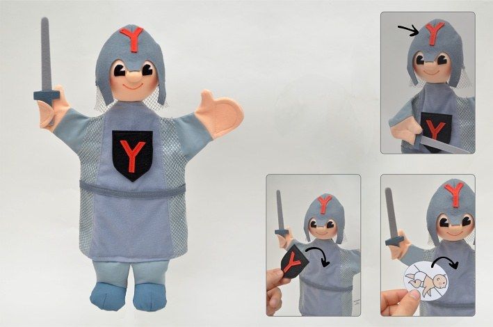 Maňásek Ypsilon pomáhá všude tam, kde je třeba naučit se rozlišovat měkké a tvrdé "i/y". Rytíř má na těle oddělávací znak se symbolem "y". Při učení je možné na oblečení Rytíře přichytit obrázkové kartičky se suchým zipem (háčky).