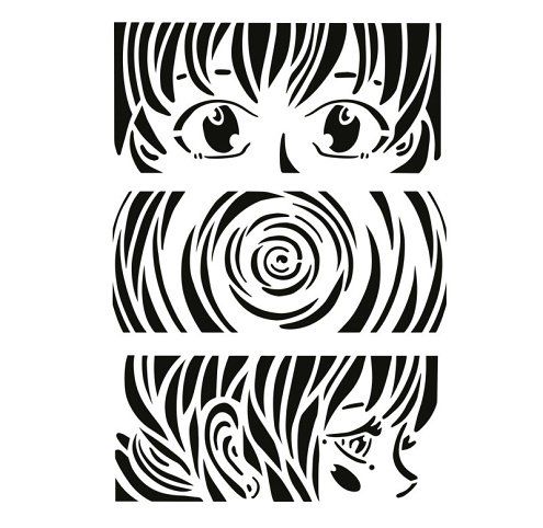 Vytvořte jedinečné motivy s touto plastovou šablonou inspirovanou japonskou manga estetikou. Šablona obsahuje tři různé části s detaily očí, vlasů a spirálovým efektem, ktré lze snadno přenést na textil, papír, dřevo nebo jiné povrchy. Ideální pro tvorbu triček, tašek či jiných dekorací s použitím textilních či akrylových barev.