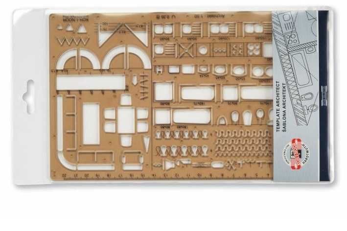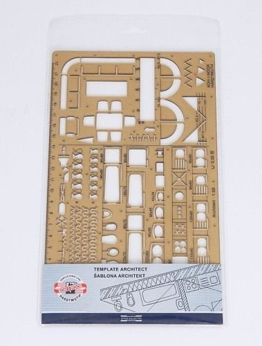 Šablona architekt je vyrobená z kouřovéko průhledného copolyesteru. Je určena ke kreslení schémat architektonických návrhů interiérů v měřítku 1:50. Konstruována je pro práci s ohrocenou tužkou, mikrotužkou nebo technickým perem 0,35 mm. Na horní hraně šablony je natištěna délková milimetrová stupnice s označením každého celého centimetru číslicí. Tisk je proveden technologií přesného sítotisku a při běžném používání je odolný proti opotřebení. Šablona je určena pro použití ve škole i v kanceláři. Zabalena je do celotransparentního polypropylenového pouzdra s papírovou vložkou a eurozávěsem.