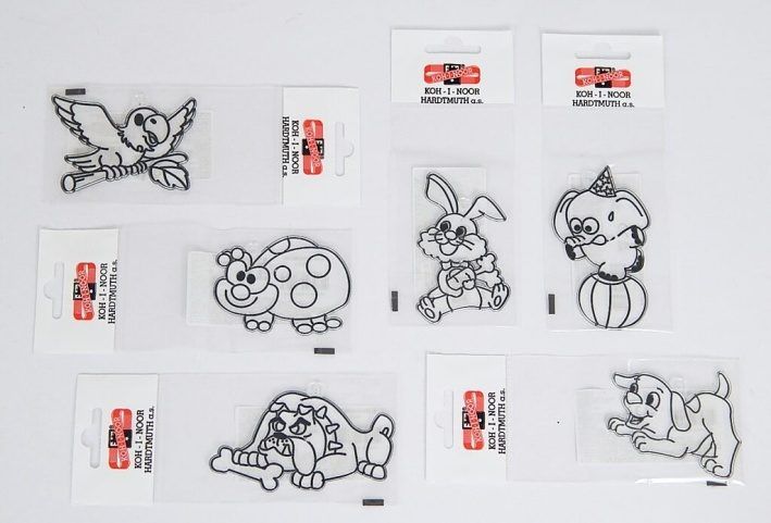 Plastová formička vhodná pro děti. Reliéf šablony se mohou vyplnit dekorativními barvami nebo modelovací hmotou Bubble foam. Bezbarvá krastenová formička - černá reliéfní kresba se 6-ti motivy - pes, slon, zajíc, papouše, beruška, pes s kostí, do které se maluje nebo se vyplňuje hmotou. Spodní strana hladká, vrchní – černá vystouplá kresba s různými motivy. Rozměr 155 x 65 x 3 mm.