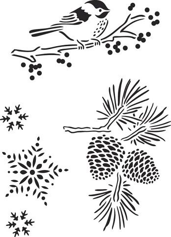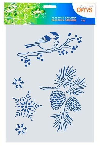 Šablona ptáček, šiška,vločka 20x15cm plast