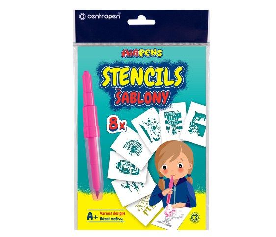 Papírové šablony s různými motivy- k vytváření obrázků- k vyzdobení pořadačů, originálních pohledů či vytváření dárkových předmětů- pro lepší výsledky použijte tyto šablony s foukacími fixy- balení obsahuje 8 kusů šablon ve formátu A5. - mix motivů