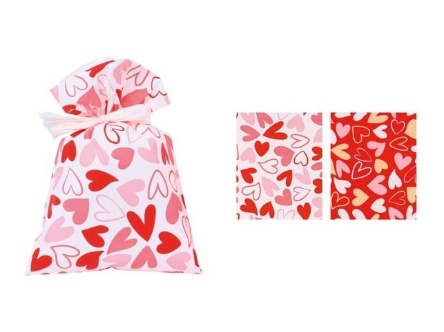 Dárkový sáček v bílé a červené barev s motivem srdíček. Sáček je vyrobený z pevného a kvalitního materiálu. Skvělý na zabalení drobných dárků. Sáček můžete uzavřít vázací stuhou a tím ho dozdobit. V naší nabídce naleznete velký výběr stužek a rozetek, které Vám pomohou při dekoraci balíčku. Motiv: srdce Barva: bílá, červená Rozměr: 200 x 320 mm Uvedená cena je za 1 ks.