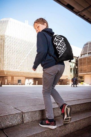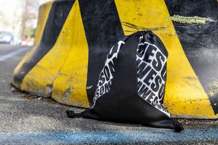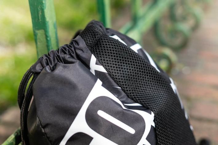 Sáček na cvičky nebo přezůvky. Sáček je vyroben z pevného omyvatelného materiálu naa přední straně sáčku je umístěna prodyšná síťka. Zdrhování pomocí pevných tkanic, které zároveň umožňují nošení na zádech.