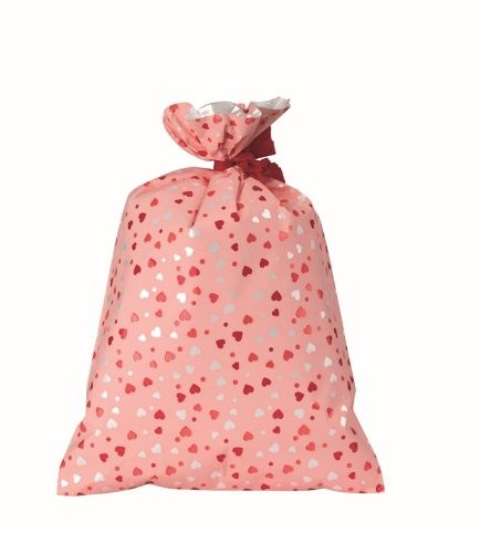 Celofanový sáček o velikosti 25x40 cm Srdíčka.