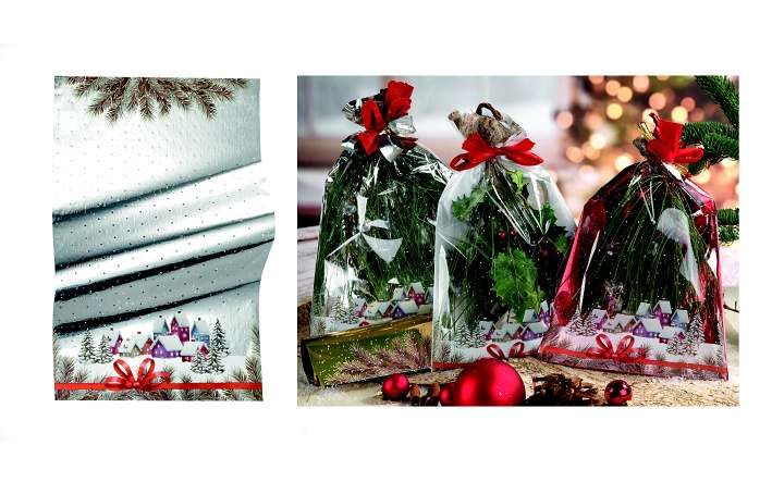 Celofanový sáček o velikosti 30x45 cm Krajinka stříbrná.