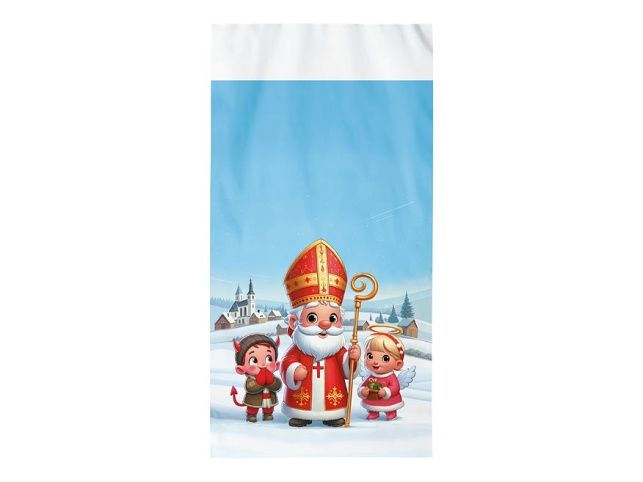 Mikulášský sáček s potiskem Mikuláše, čerta a andílka je ideální pro balení mikulášské nadílky. Vyroben z kvalitního materiálu s odolným povrchem, který poskytuje dostatek místa pro sladkosti, malé dárky nebo ovoce.
