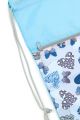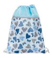 Sáčky na cvičky jsou praktickým doplňkem školní aktovky pro uložení přezůvek či věcí na tělocvik. Vodoodpudivý pevný materiál udrží věci v suchu. Kapsa na zip oddělí boty od ostatního oblečení. Stahovací šňůrka spojená se spodní částí promění sáček v malý batůžek na záda. Rozměr: 32 x 44 cm.