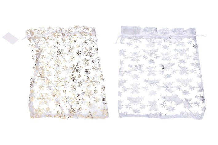 Sáček ORGANZA Vločky 17x23 cm Vánoce