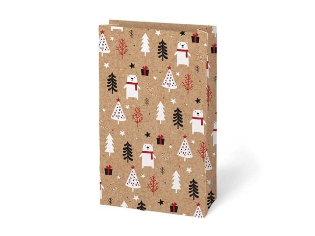 Vánoční, dárkový papírový sáček KRAFT. Sáčky jsou vyrobeny z pevného kraftového papíru. Jsou ideální na zabalení vánočního cukroví, perníčků nebo sušeného ovoce. K uzavření sáčku můžete použít dekorativní kolíček, samolepící jmenovku nebo stuhu a vytvořit tak jedinečný dárek. Gramáž: 120 g Balení: 12 ks Barva: hnědá přírodní Motiv: mix vánočních motivů Rozměr: 100 x 180 x 60 mm Uvedená cena je za 1 ks.