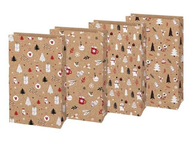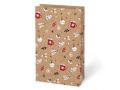 Vánoční, dárkový papírový sáček KRAFT. Sáčky jsou vyrobeny z pevného kraftového papíru. Jsou ideální na zabalení vánočního cukroví, perníčků nebo sušeného ovoce. K uzavření sáčku můžete použít dekorativní kolíček, samolepící jmenovku nebo stuhu a vytvořit tak jedinečný dárek. Gramáž: 120 g Balení: 12 ks Barva: hnědá přírodní Motiv: mix vánočních motivů Rozměr: 215 x 270 x 90 mm Uvedená cena je za 1 ks.