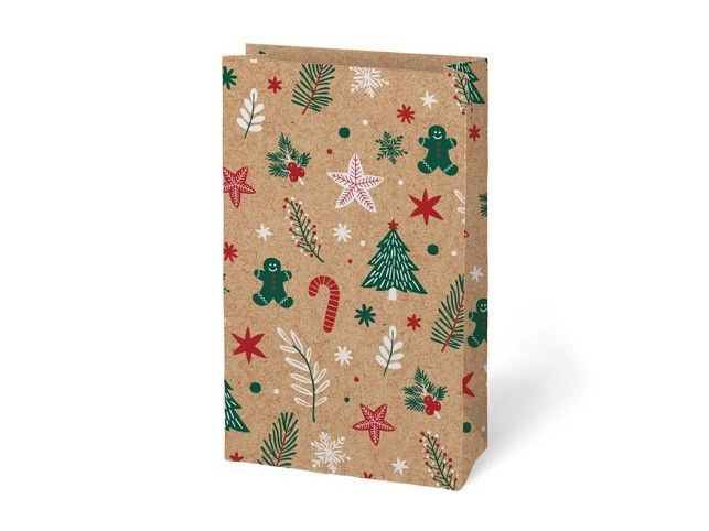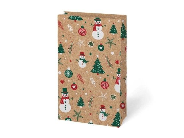 Vánoční papírový sáček KRAFT 4 - originální balení drobných dárků Drobné dárky si zaslouží krásné a originální balení. Vánoční dárkový papírový sáček KRAFT 4 je ideální pro sladkosti, maličkosti či malé pozornosti, které chcete předat s elegancí a sváteční náladou. Sáček je vyroben z kvalitního kraftového papíru, který je pevný, recyklovatelný a ekologický. Přírodní hnědá barva v kombinaci se čtyřmi veselými vánočními motivy dodá každému dárku jedinečný sváteční vzhled. Balení: 12 ks Gramáž: 120 g Motiv: vánoční Materiál: kraftový papír Rozměr: 100 x 180 x 60 mm Uvedená cena je za 1 ks.