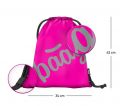 Sáček na cvičky nebo přezůvky ve výrazné růžové barvě s logem Baagl, které ve tmě svítí, Zdrhování pomocí pevných tkanic, které zároveň umožňují nošení na zádech