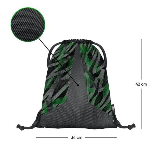 Sáček na cvičky nebo přezůvky. Sáček je vyroben z pevného omyvatelného materiálu, na přední straně sáčku je umístěna prodyšná síťka. Zdrhování pomocí pevných tkanic, které zároveň umožňují nošení na zádech.