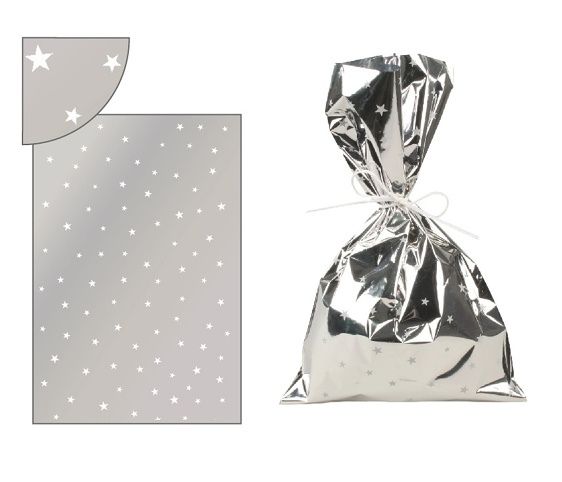 Sáček stříbrný s bílými hvězdičkami 16x25cm 13503