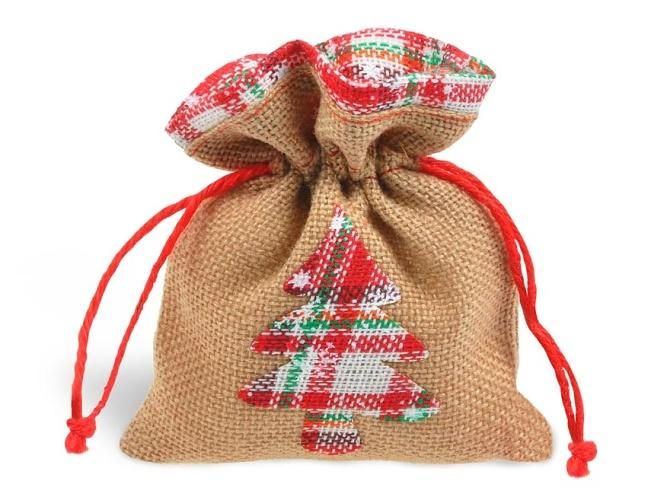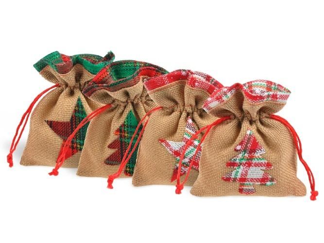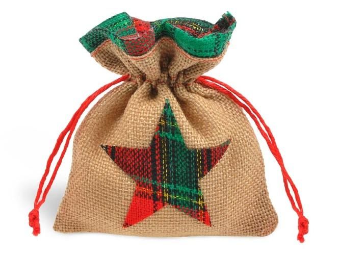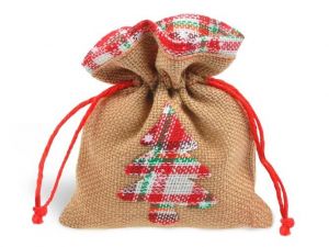 Sáček textil vánoční pytlovina 18x23cm mix