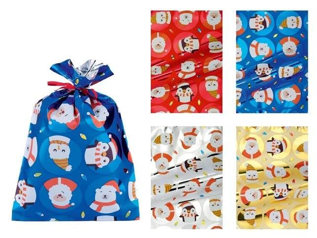 Vánoční, celofánový sáček v modré barvě s motivy tučňáka, ledního medvěda, sněhuláka a Santa Clause. Vyrobený z luxusního celofánu s potiskem. Skvělý na zabalení drobných dárků. Sáček můžete uzavřít vázací stuhou a tím ho dozdobit. Barva: modrá Motiv: vánoční (tučňák, lední medvěd, sněhulák, Santa Claus) Rozměr: 200 x 350 mm Uvedená cena je za 1 ks.