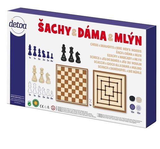 Šachy a dáma dřevo společenská hra v krabici 35x23x4cm