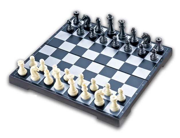Šachy desková hra. Rozměry krabičky 20x3x10 cm. Magnetické figurky a deska