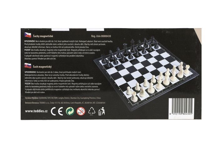 Klasická hra šachy v praktickém magnetickém provedení pro ještě větší komfort a přehlednost! Díky magnetickým figurkám zůstává hra stabilní i během cestování. Ideální pro děti i dospělé, začátečníky i pokročilé hráče. Elegantní černobílý design a pevné balení dělají z této sady skvělý dárek i výbavu na cesty.