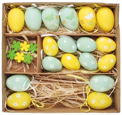 Sada 24 ks - plastová vajíček mix velikostí, dekorace v krabičce