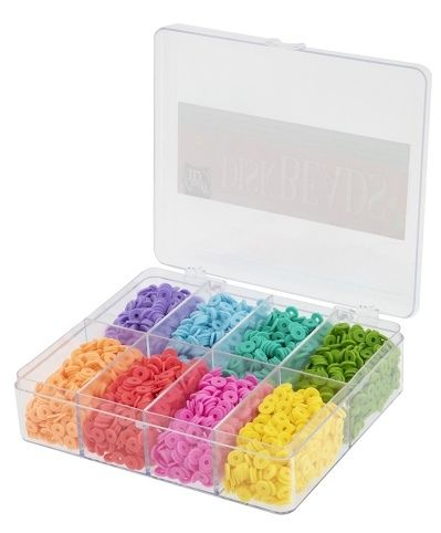 Úžasná sada korálků ve tvaru disků o velikosti 6mm (otvor 2mm) obsahuje celkem 8 barev každá po 16 gramech (celkem tedy 128 gramů korálků), baleno v praktickém pevném plastovém znovuuzaviratelném pořadači