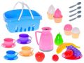 Sada čajového servisu v košíku s 25ks nádobí a potravinami v síťce