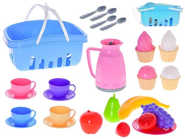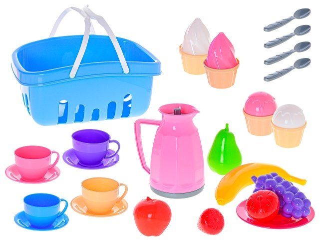 Čajová souprava je skvělým doplňkem do každého holčičího pokojíčku. Umožňuje zajímavě trávit čas zejména za nepříznivého počasí. Dítě může čaj podávat panenkám, medvídkům i rodičům. Sada čajového servisu v košíku obsahuje 25 ks nádobí a potravin. Vhodné pro děti od 3 let.