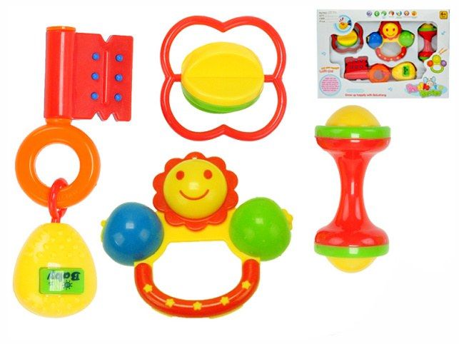 Sada čtyř veselých chrastítek je určena pro ty nejmenší. S těmito roztomilými chrastítky zažije děťátko mnoho legrace a navíc si přitom rozvíjí motorické a zrakové schopnosti.