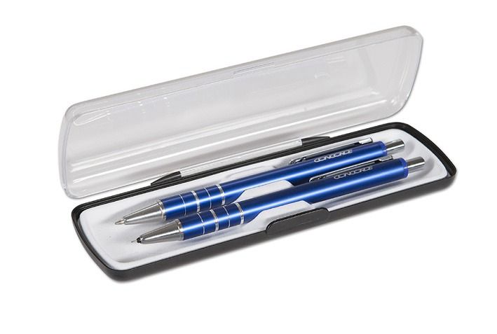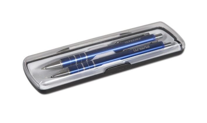 Dárková sada v plastové krabičce obsahuje kuličkové pero 0,7mm a mechanickou tužku 0,5mm. Lesklé tělo z eloxovaného hliníku s kovovým klipem. Náhradní plastová náplň A3 modrá. Dodávaná v modré barvě.