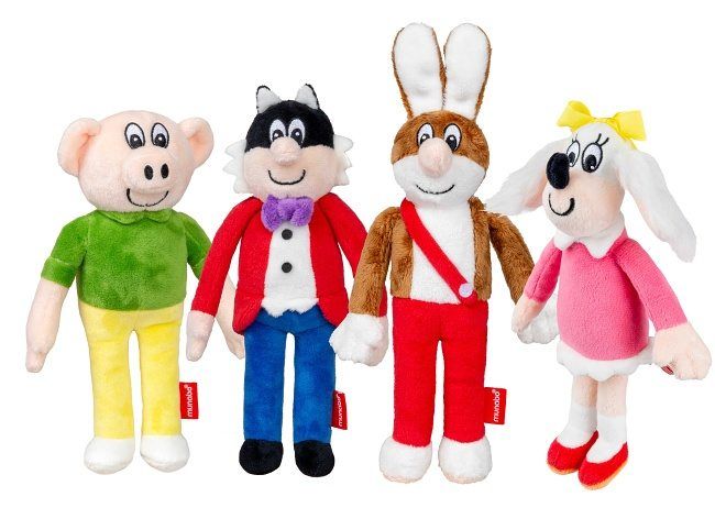Sada čtyř plyšových postaviček z nejznámějšího a nejstaršího českého komiksu. Čtyřlístek t.j. kocour Myšpulín, prasátko Bobík, pejsek Fifinka a zajíc Pinďa.