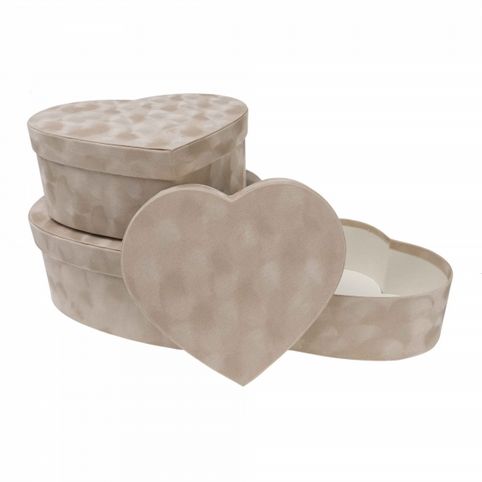 Sada dárkových krabiček ve tvaru srdce velká béžová, semišový povrch velká