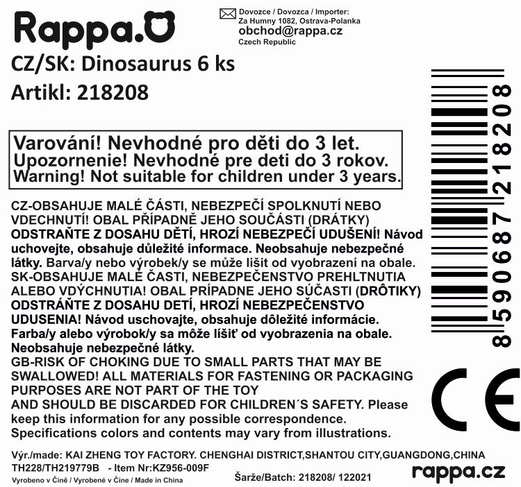 Prehistorická zvířata v sadě po 6 ks. Jsou vyrobena z kvalitní, tvrdé gumy. Velikost zvířátka cca 5-9 cm.
