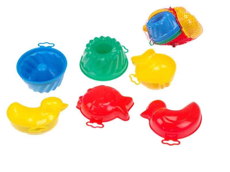 Sada na písek obsahuje 6různých druhů formiček o velikosti 7,5-9cm v síťce.